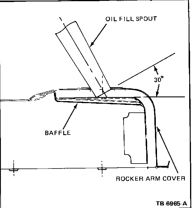 To prevent oil spill-over, use an oil fill spout and place into the fill opening at a 30~ angle towards the transmission end of the rocker arm cover (Figure 2).