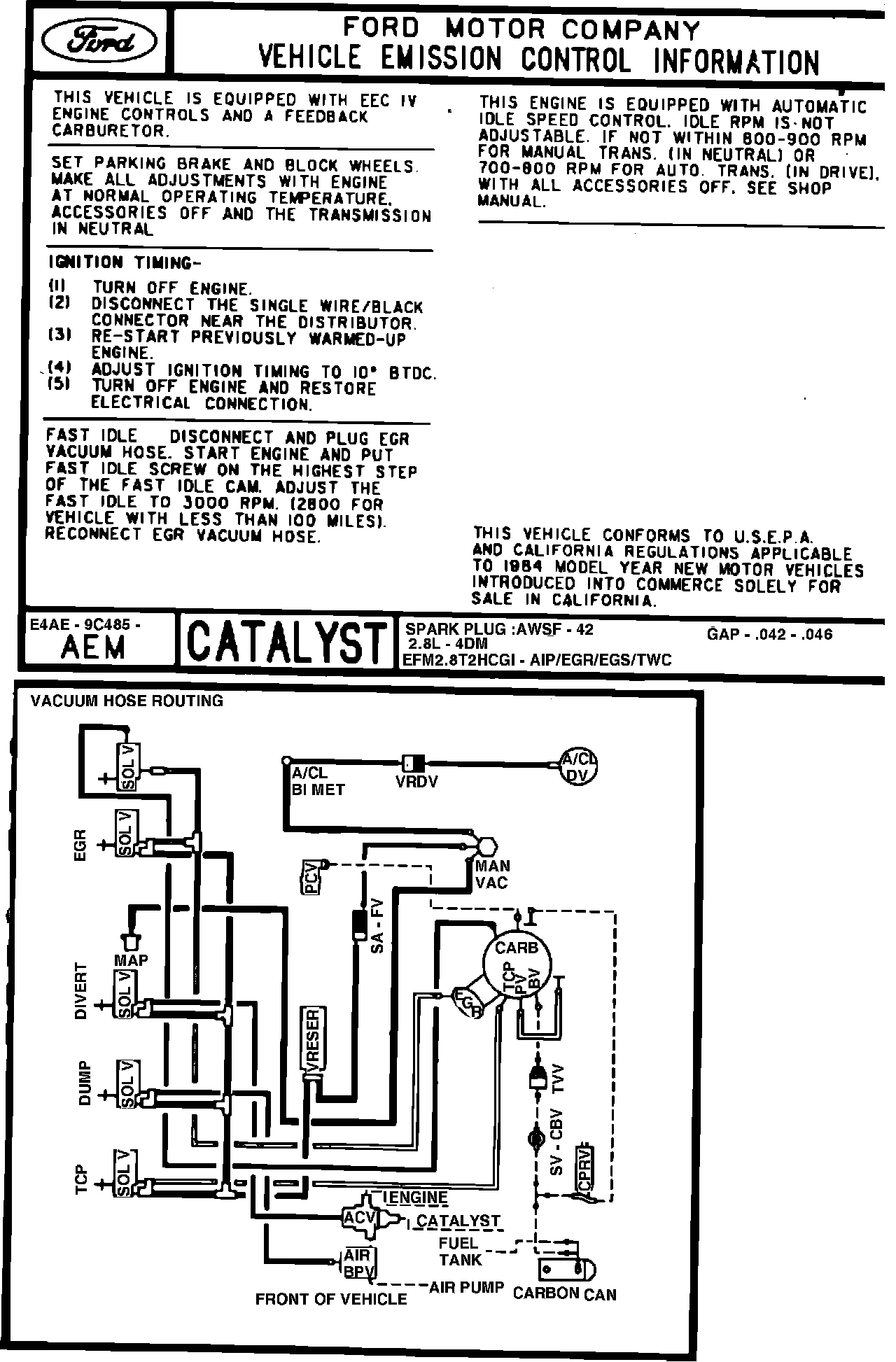 MODEL YEAR: 1984 ENGINE: 2.8L