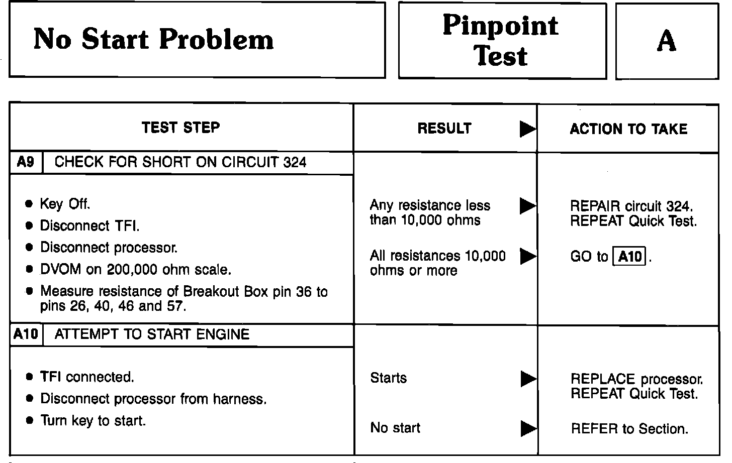 A Thru A10 - No Start Problem