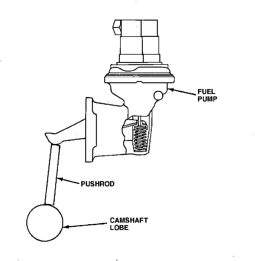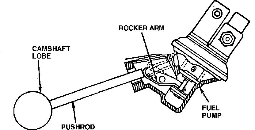 The fuel pump is bolted to the left front side of the cylinder block on 2.3L HSC Tempo/Topaz and to the left rear side of the 1.6L cylinder head. It's mechanically operated by an eccentric on the camshaft. A pushrod between the cam lobe and the rocker arm drives the pump.