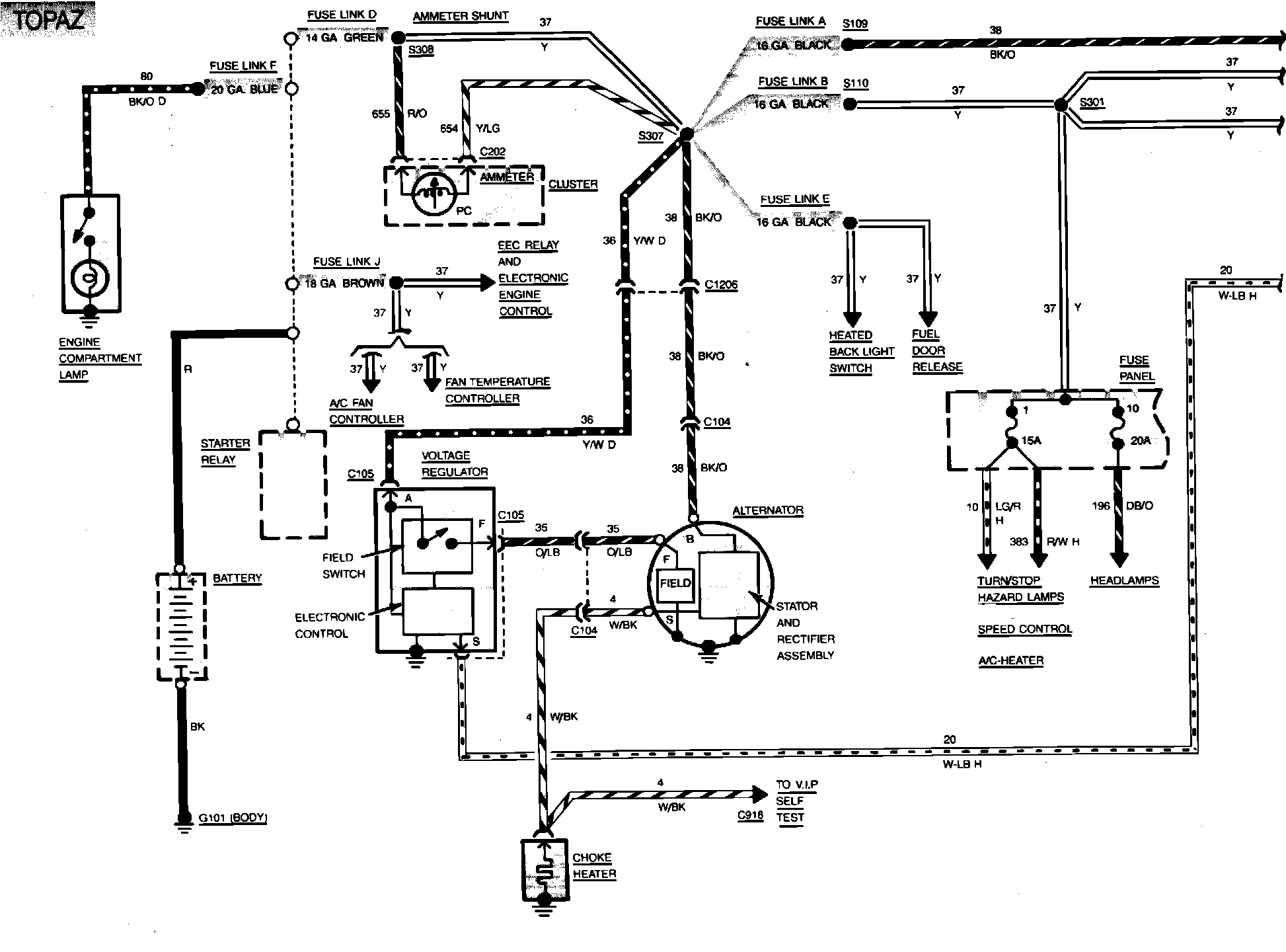 Fig. 7 Charging System & Power Distribution Wiring Circuit (Part 2 of 2). 1984 Topaz: