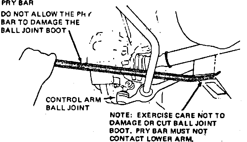 5. Separate ball joint from steering knuckle using pry bar, Fig. 1. Lower ball joints fit into a pocket formed in the plastic disc brake shield. The shield must be positioned away from the ball joint while removing ball joint from steering knuckle.