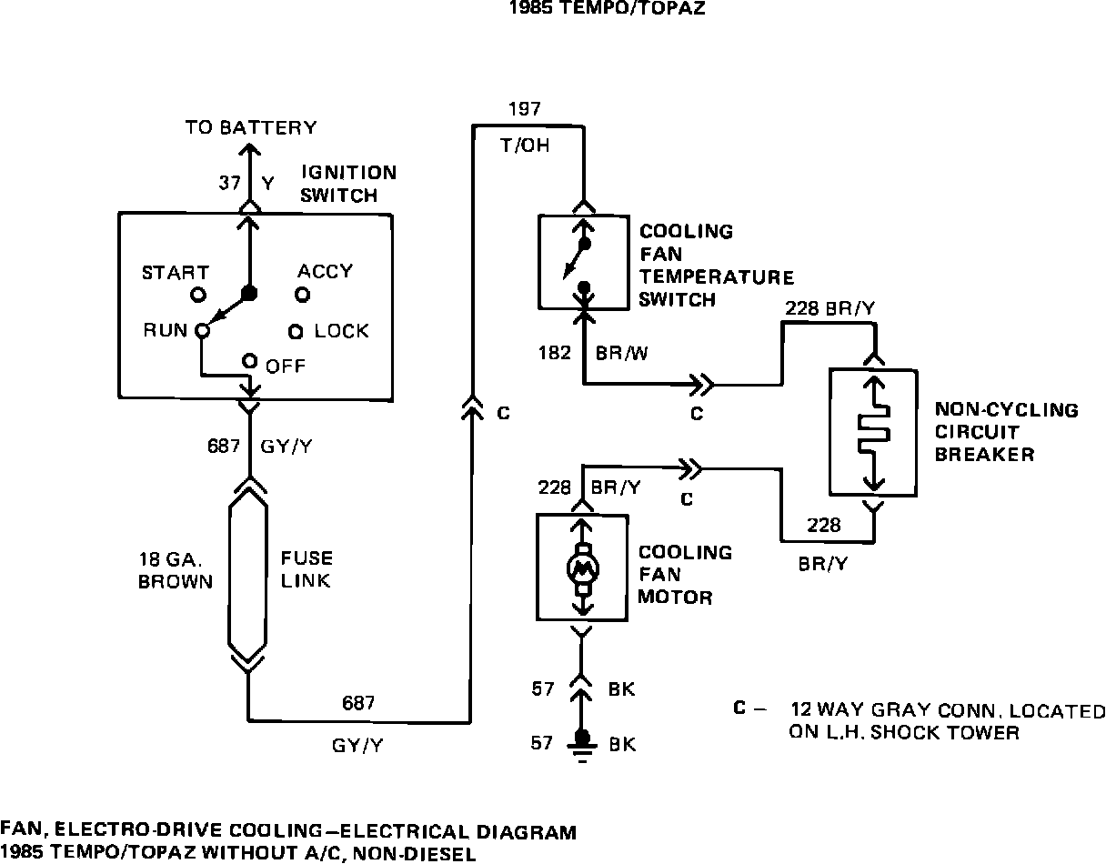 Article No. 85-5-3EVTM (ELECTRICAL VACUUM TROUBLE SHOOTING MANUAL) REVISED COOLING FAN SCHEMATIC - 1985 TEMPO/TOPAZ