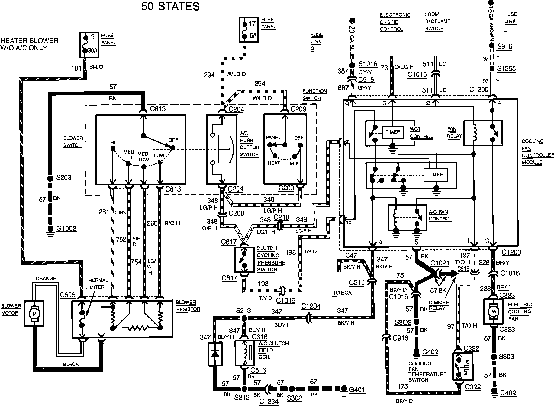 50 States - Air Conditioning Cooling Fan Wiring Circuit (Part 1 of 2). 1985 W/Gasoline Engine: