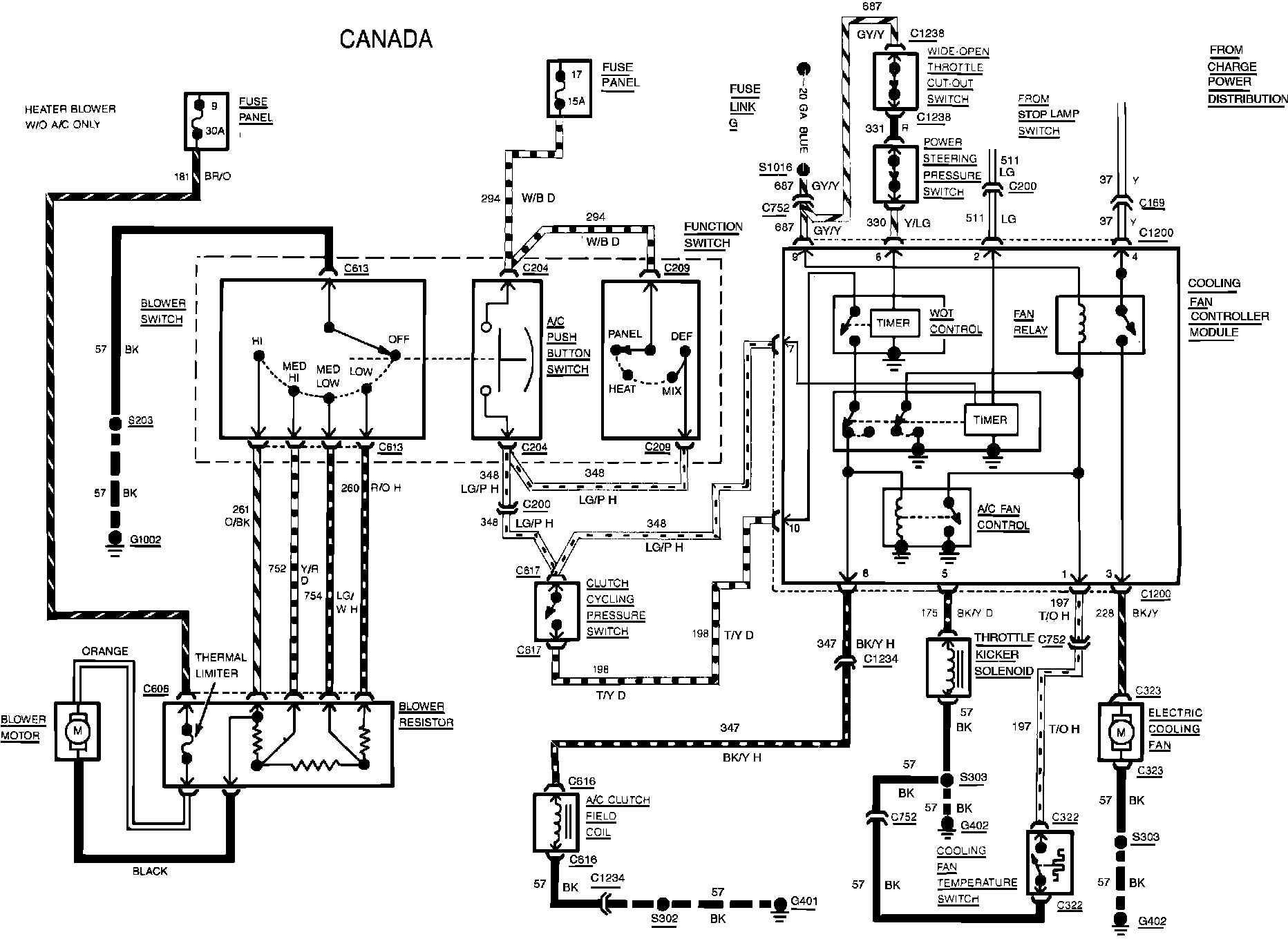 Canada - Air Conditioning Cooling Fan Wiring Circuit (Part 2 of 2). 1985 W/Gasoline Engine: