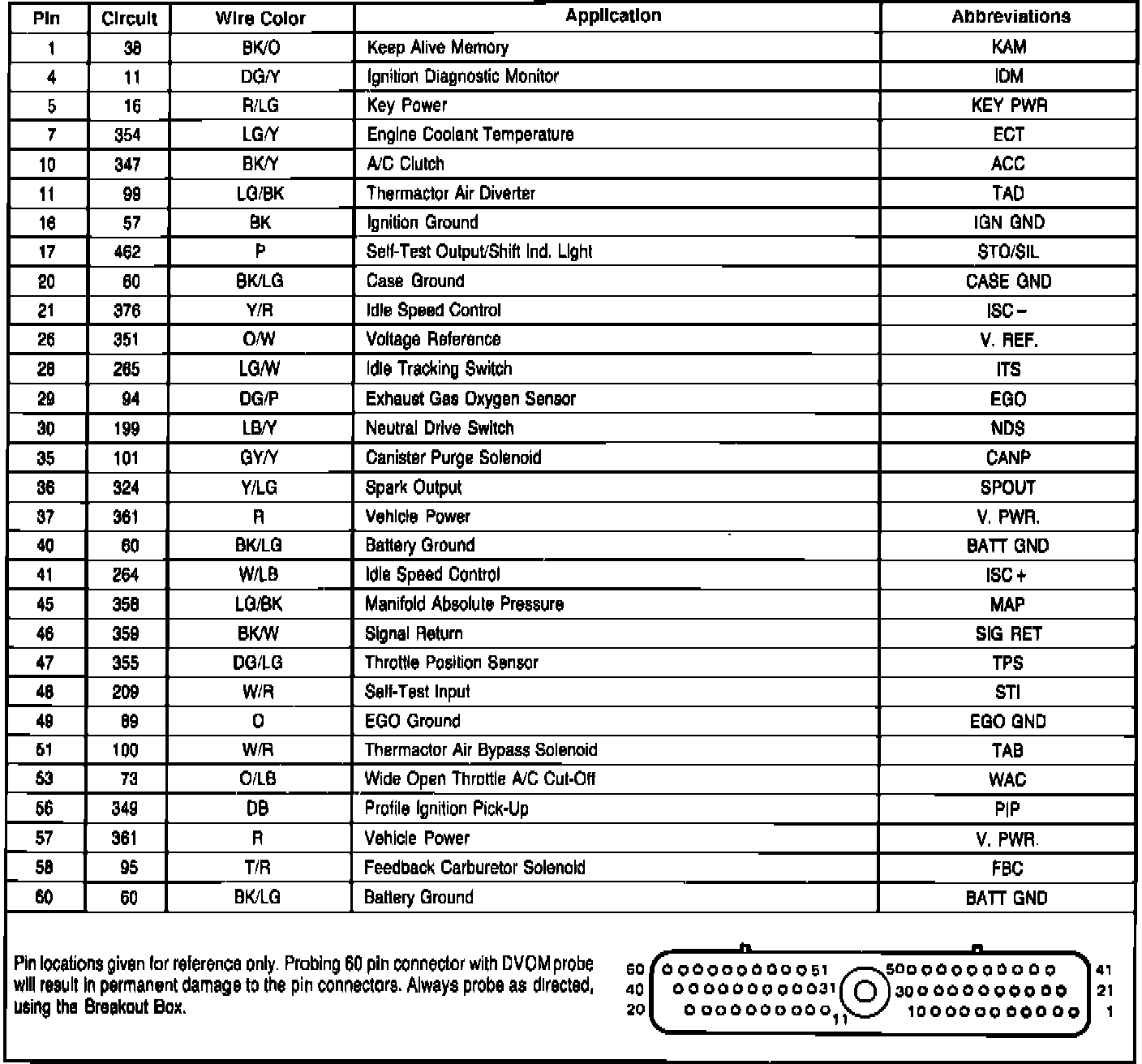 Fig. 220 EEC-IV module connector pin usage. 1986 4-140 overhead cam engine W/feedback carburetor: