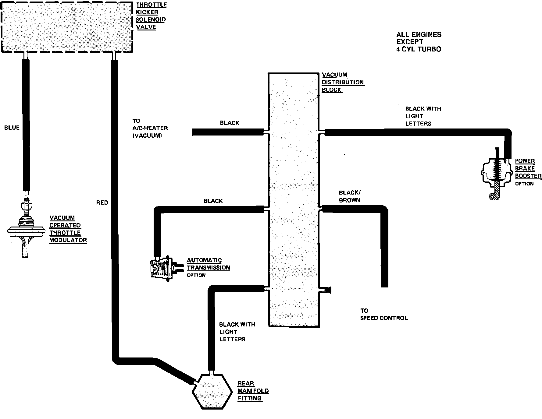 Fig. 4 Vacuum Distribution Circuit. Except 4-140 Turbocharged Engine: