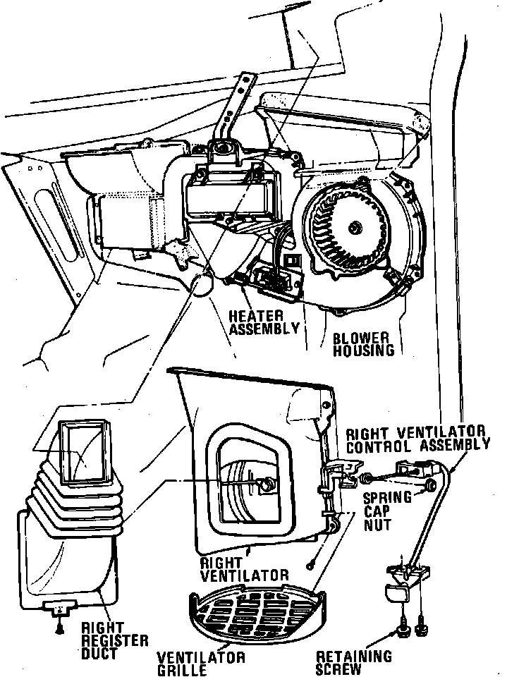 Fig. 6 Right ventilator assembly removal. Less A/C: