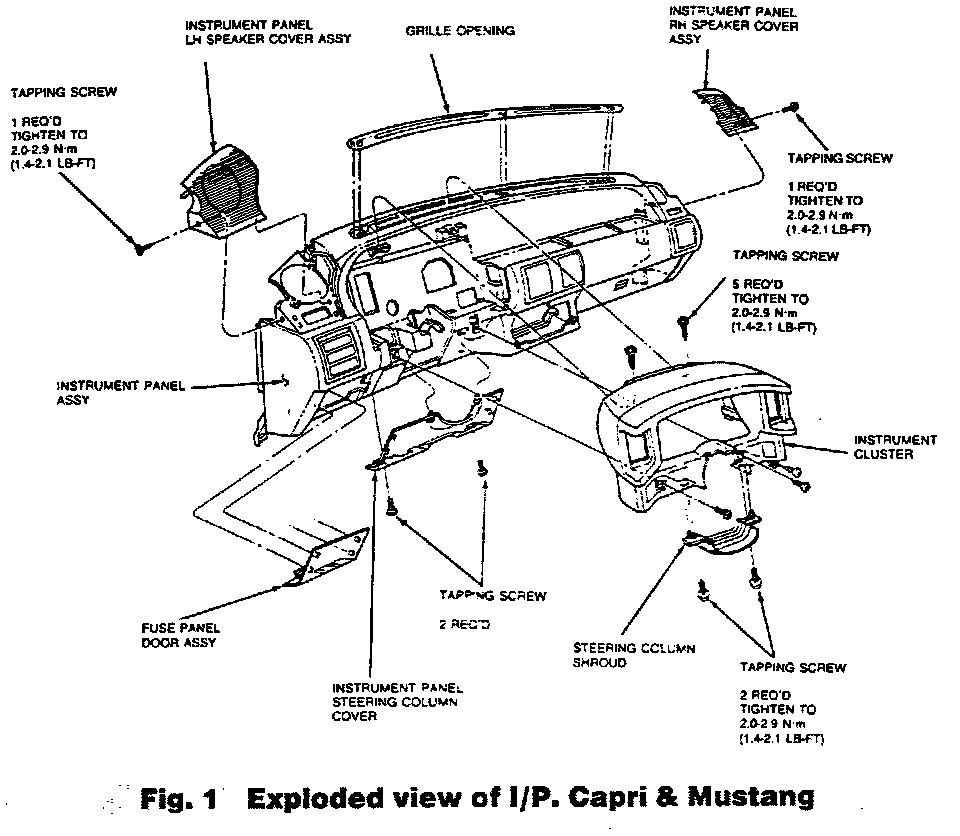 Fig. 1 Exploded View Of I/P, Capri & Mustang.:
