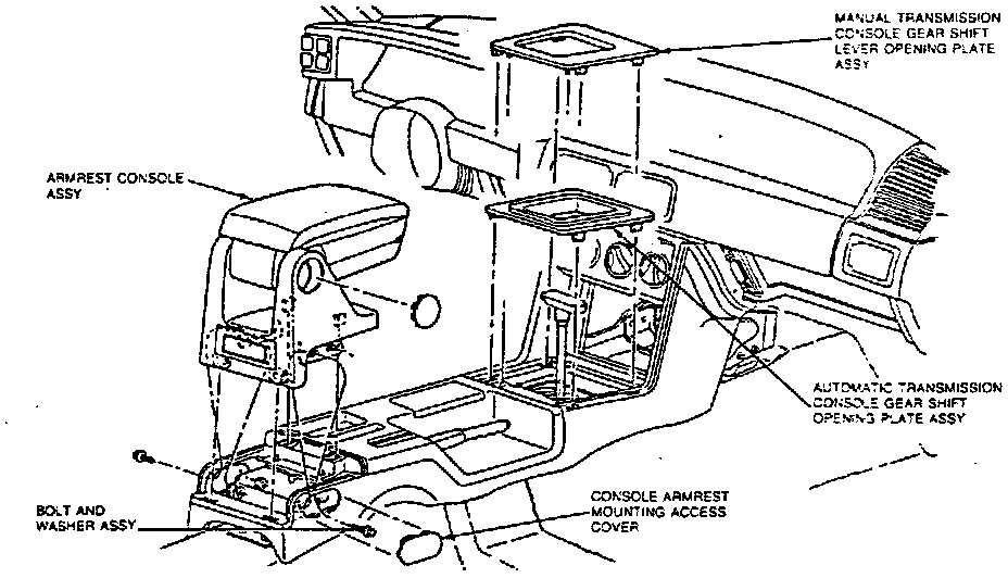 Fig. 2 Removing Console Trim Plates & Armrest, Capri & Mustang.: