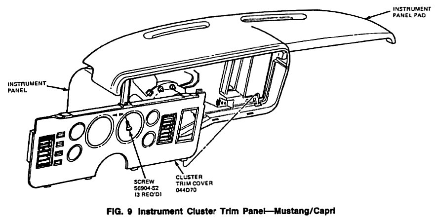 2. Remove three upper retaining screws from instrument cluster trim cover, then the trim cover. (Fig. 9).