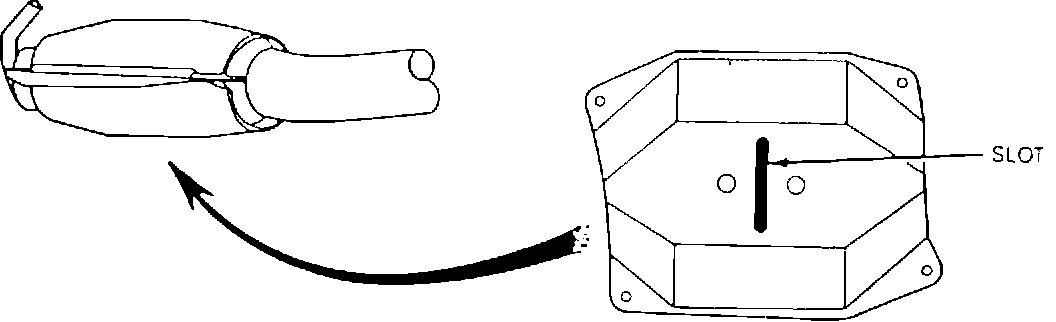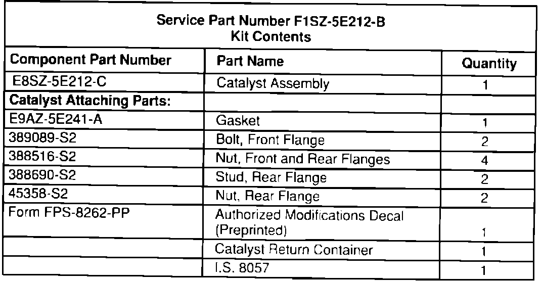 1. Locate the slot in the underbody of the catalyst heat shield that shows the catalyst part number. If the part number is E8SC-5E212-CA (Catch Word - ALF), do not replace the catalyst assembly.