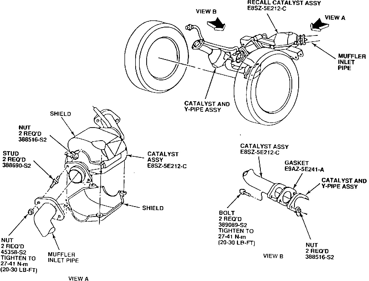 a. Tighten converter to Y-pipe bolts to 27-41 N-m (20-30 Lb.Ft.).