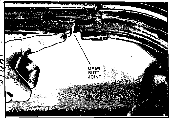 This gap between the hatch and weatherstrip butt joints is a definite leaker. If the opening cannot be closed by adjusting the hatch weatherstrip, new weatherstrip will be needed.
