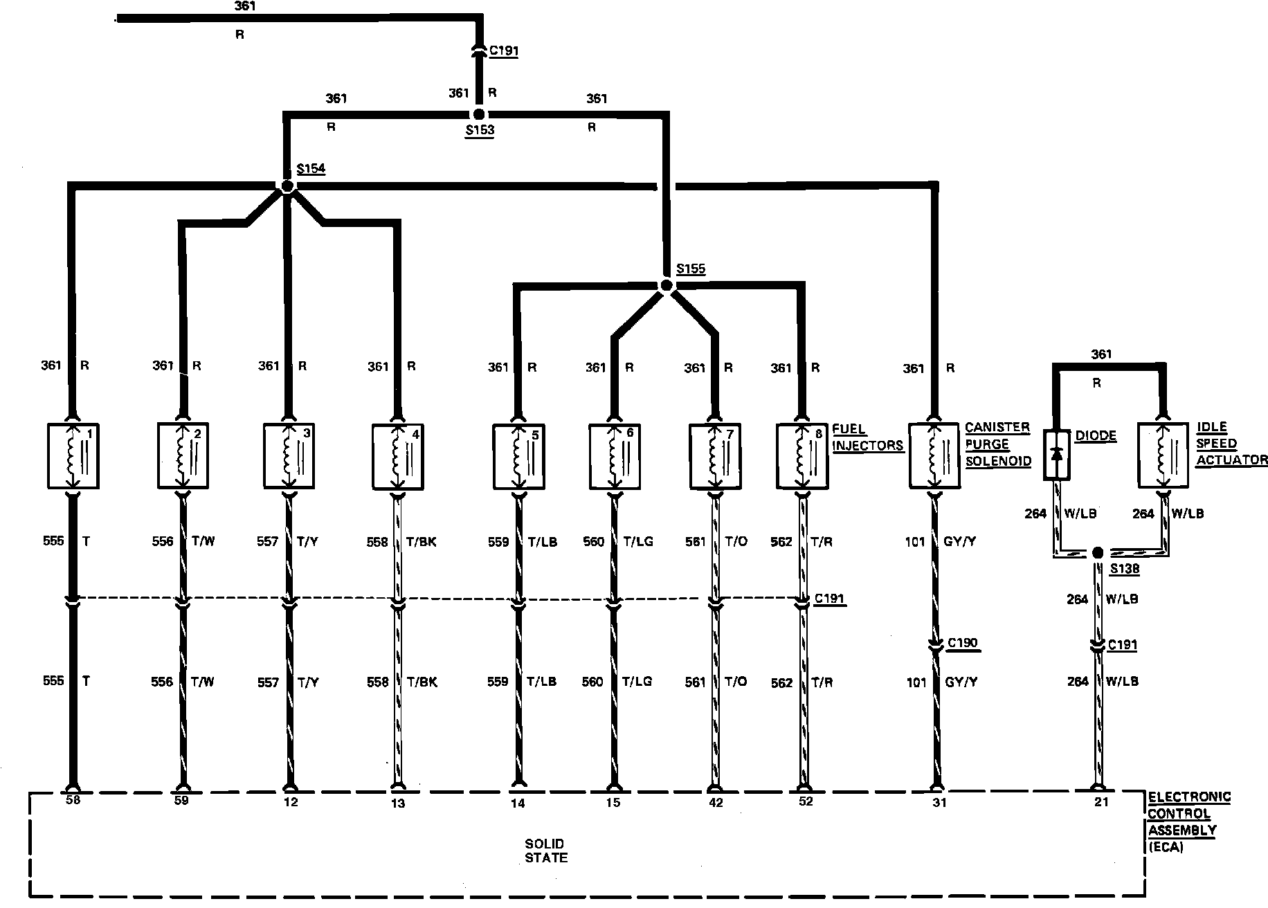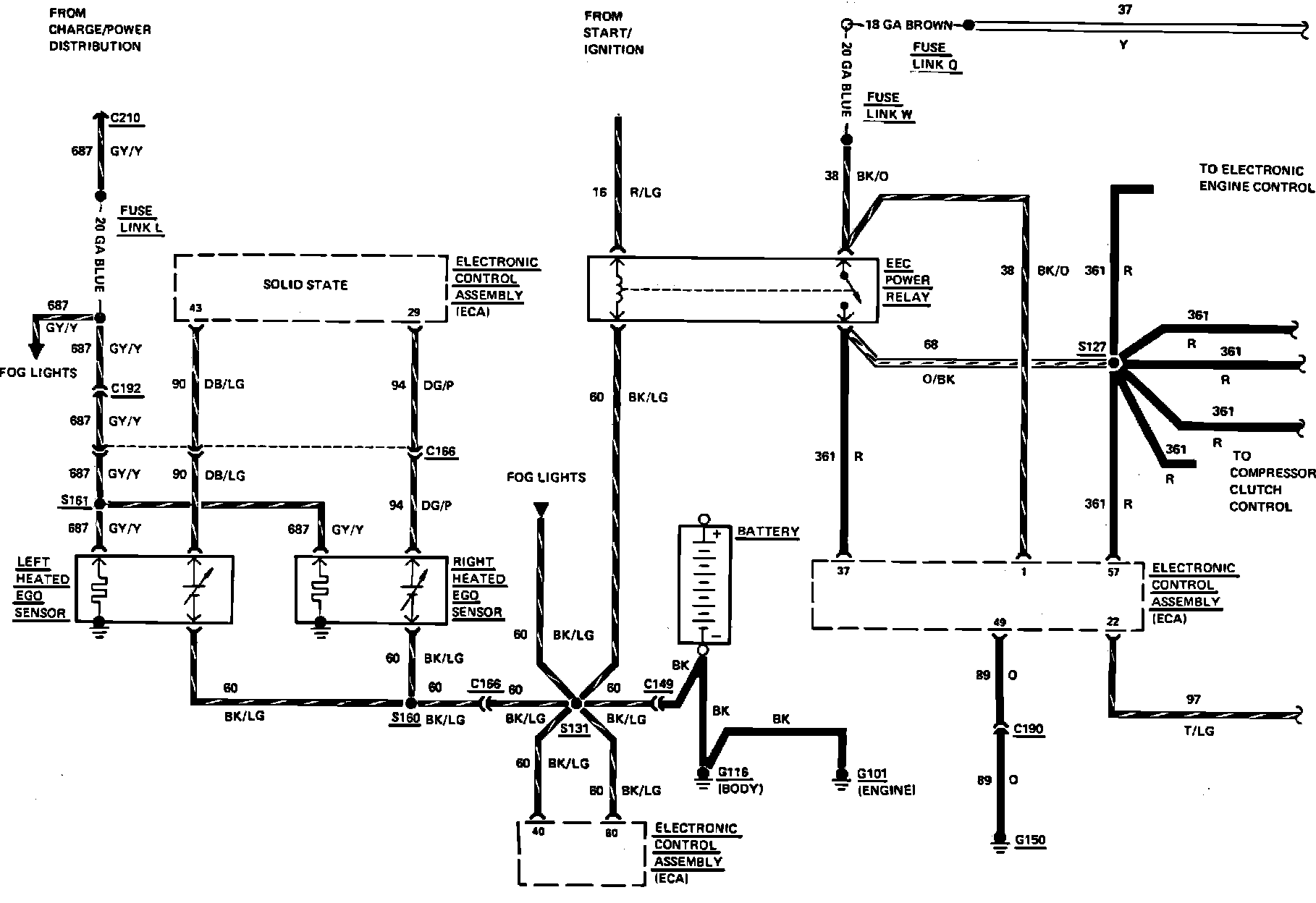 Fig. 16 Electronic Engine Control (E.E.C. IV) System Wiring Circuit (Part 1 of 4). V8 Engines: