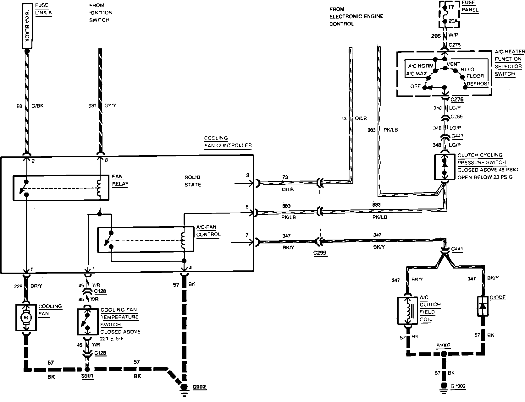 Fig. 14 Compressor Clutch Control & Cooling Fan Wiring Circuit. 4-140 Turbo Engine: