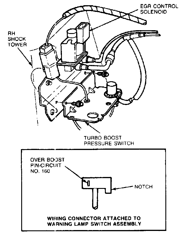 1. Overboost lamp switch check: The other pin on the connector, joining to Circuit 160, should be connected to ground when a pressure of 17.5 psi or greater is applied.