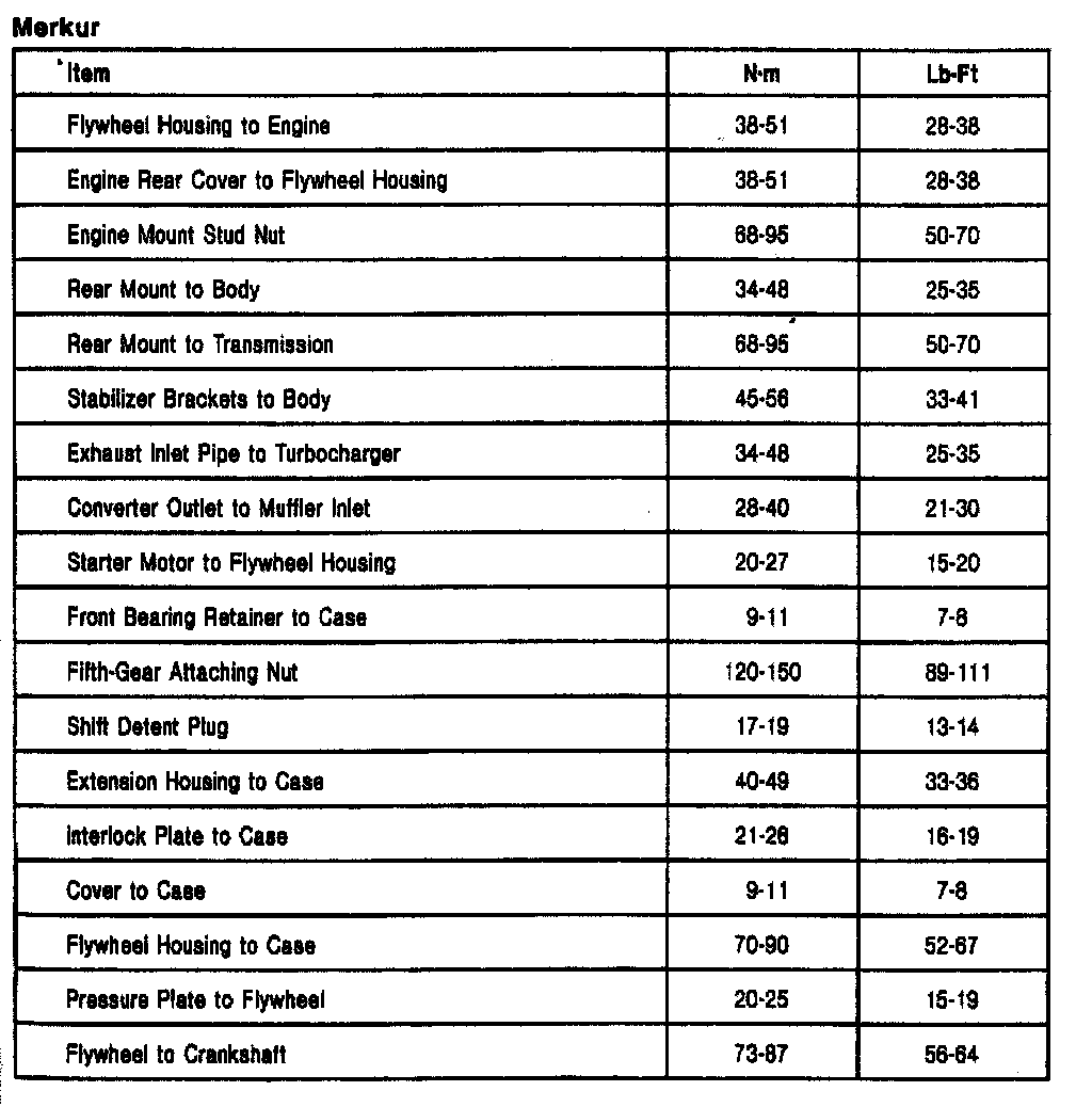 T5OD 5-spd M/T, Clutch Torque (Merkur):