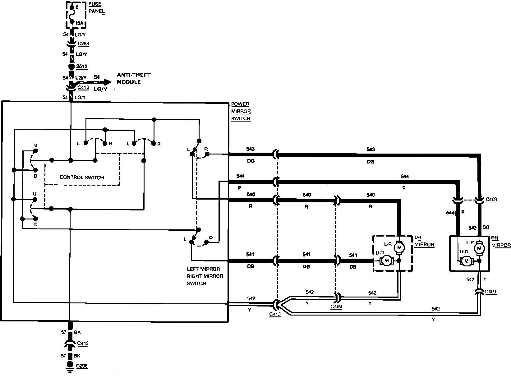 Fig. 67 Power Outside Mirror Wiring Circuit: