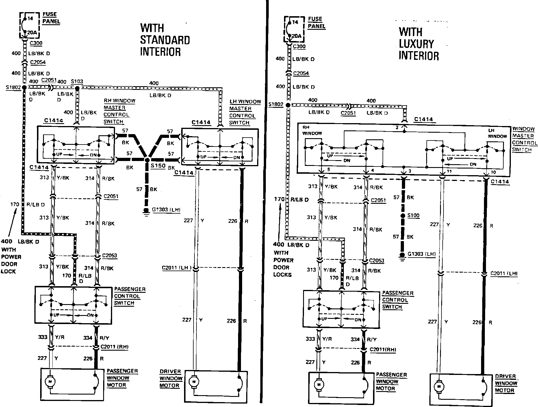 Fig. 48 Power Window Wiring Circuit. 2 Door Models: