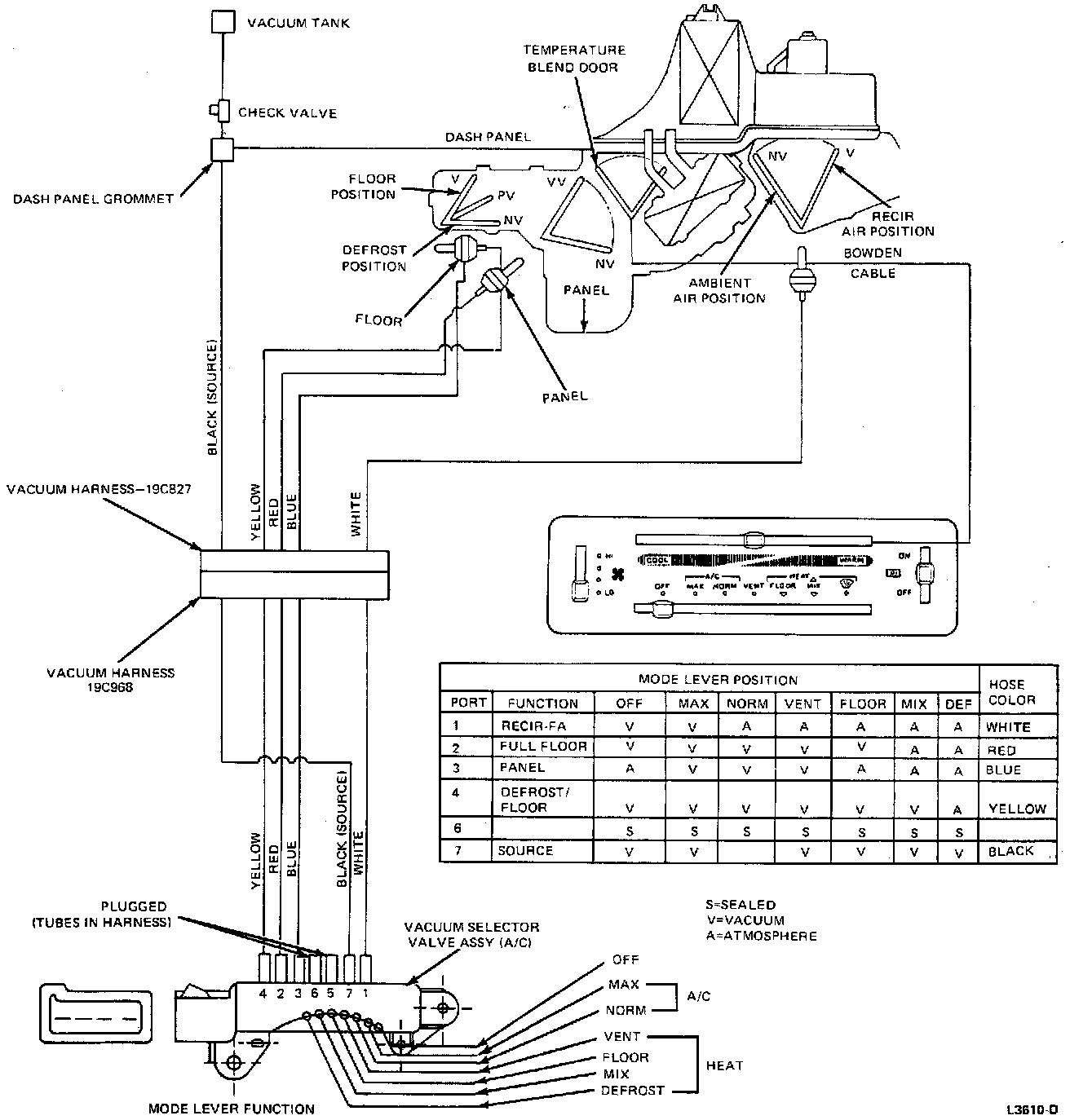 A/C Heater System Vacuum Diagram And Selector Test: