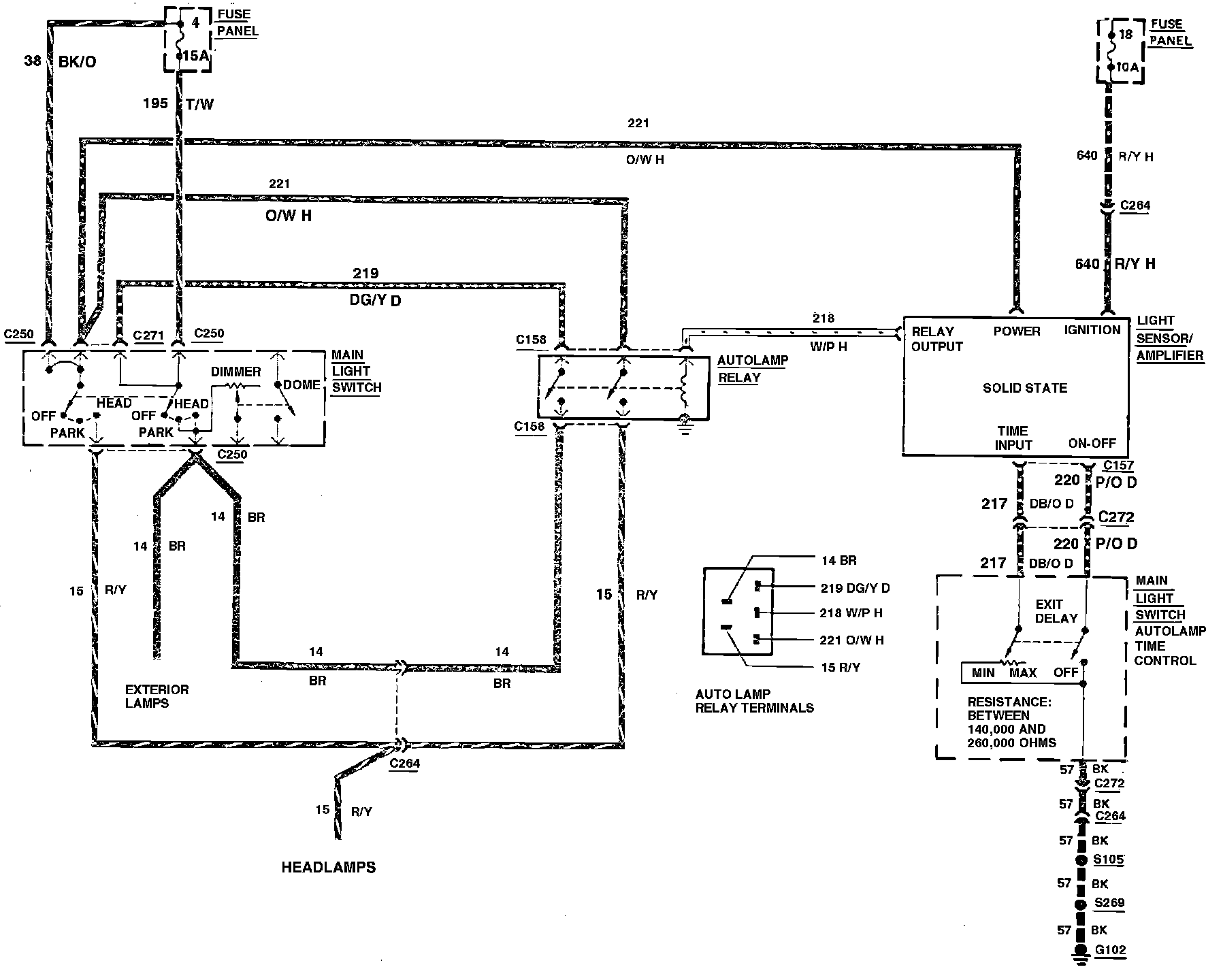 Fig. 2 Autolamp/Delayed Exit System Wiring Circuit. LTD & Marquis: