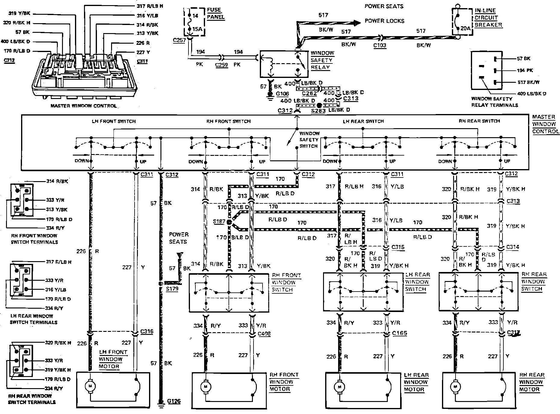 Fig. 32 Power Window Wiring Circuit. LTD & Marquis: