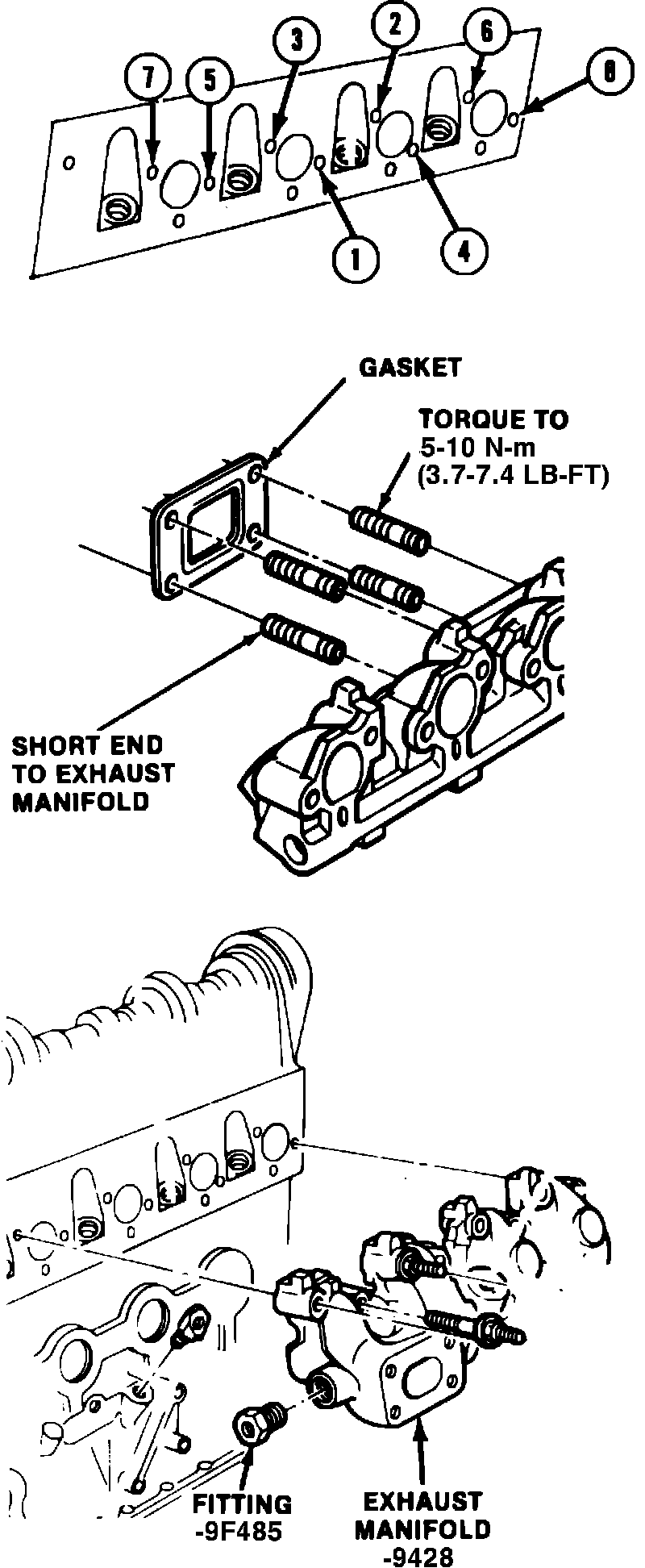 7. Position exhaust manifold on cylinder head and install attaching bolts, torquing in two steps in proper sequence, Fig. 8. Torque first to 5-7 ft. lbs., then to 16-23 ft. lbs.