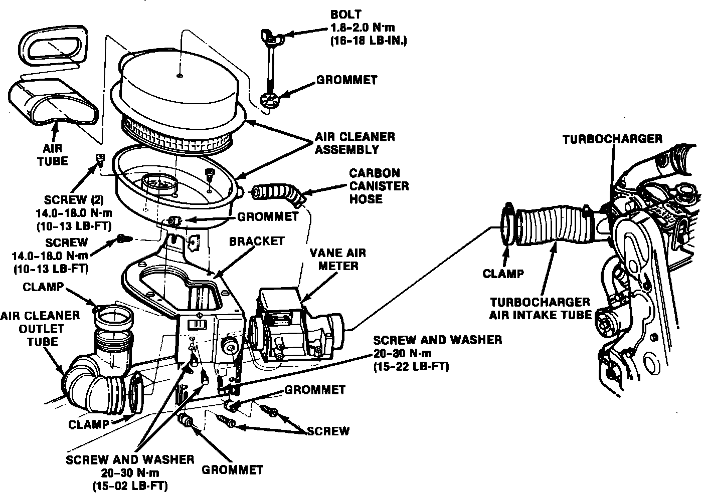 9. Remove lower half of air cleaner housing, air cleaner bracket, air cleaner outlet tube and the vane air meter as an assembly.