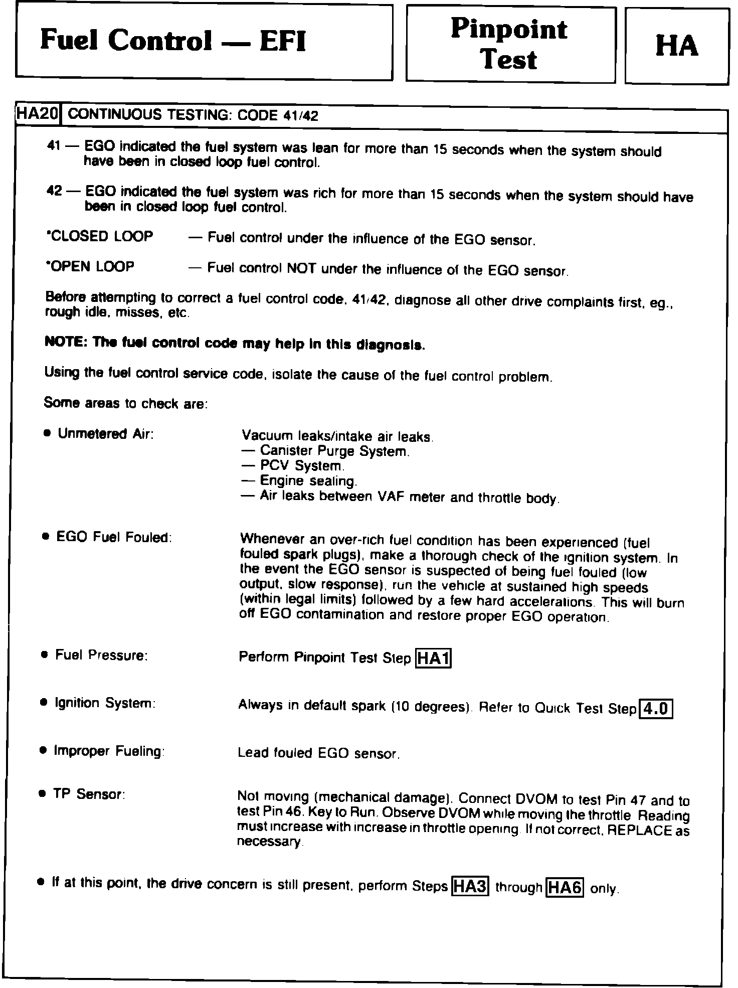 Pinpoint Test HA20. EFI Fuel Control: