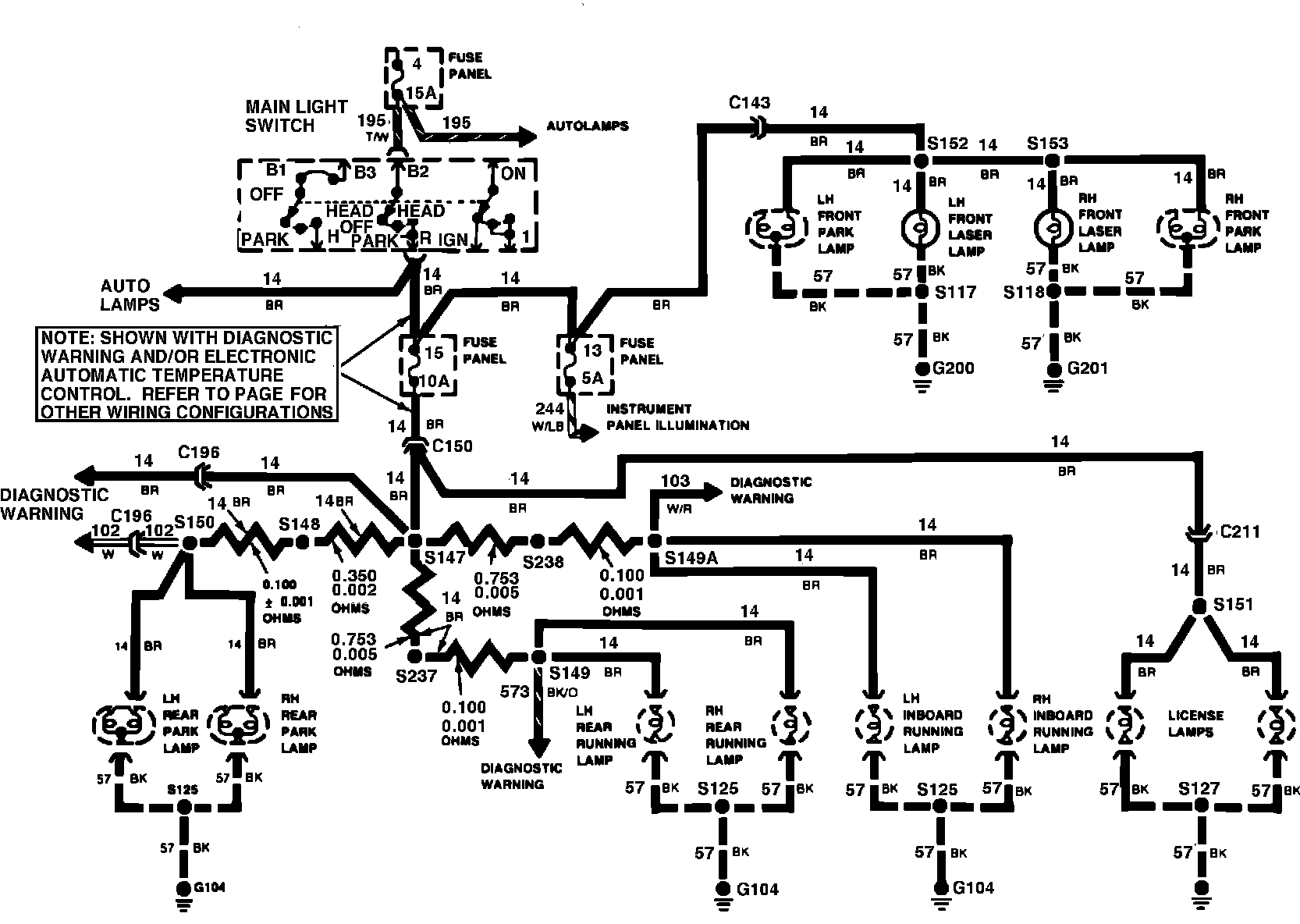 Fig. 15 Exterior Lamps Wiring Circuit (W/Diagnostic Warning). Sable 4 Door Models: