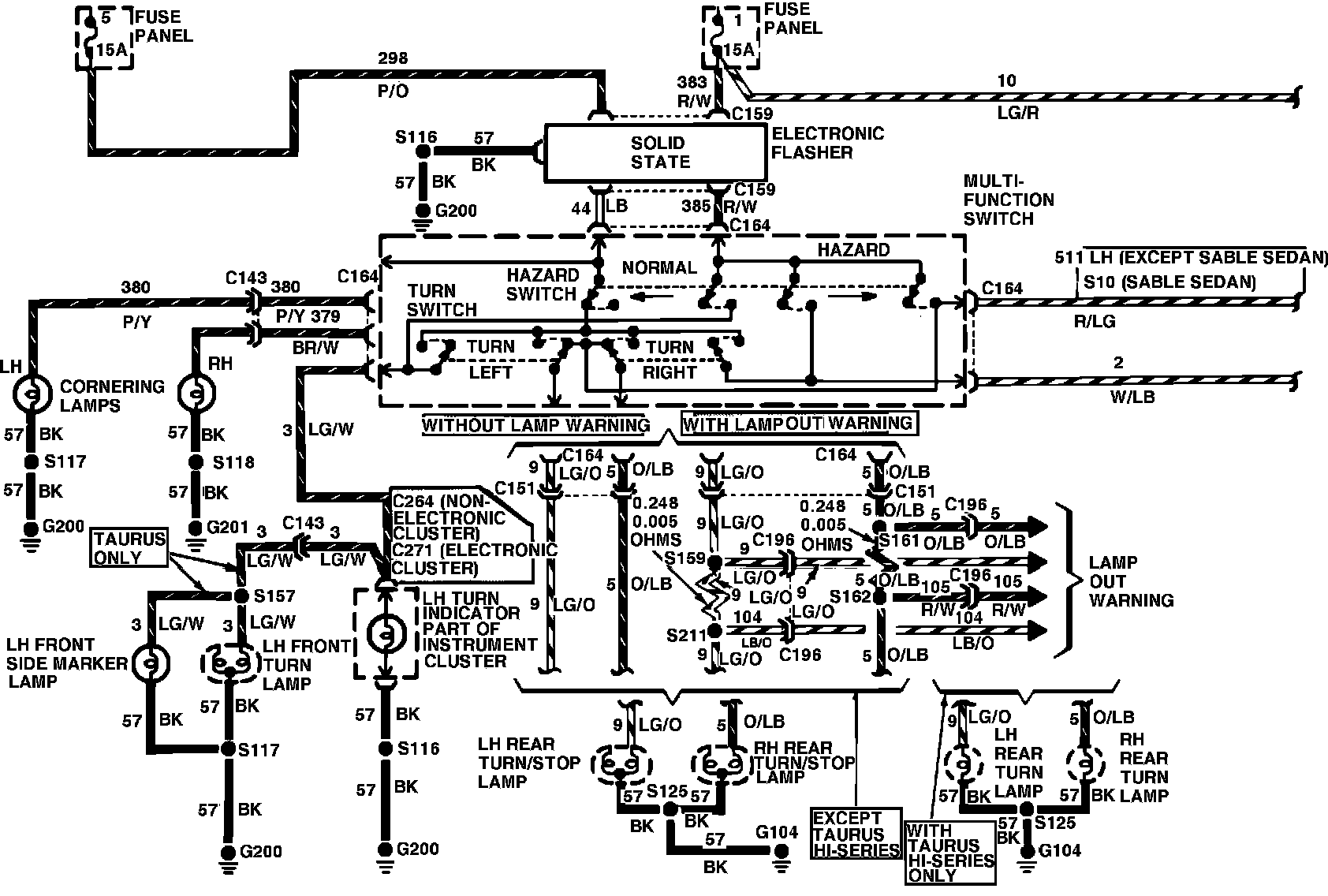Fig. 9 Cornering, Hazard, Stop & Turn Signal Lamps Wiring Circuit (Part 1 of 2):