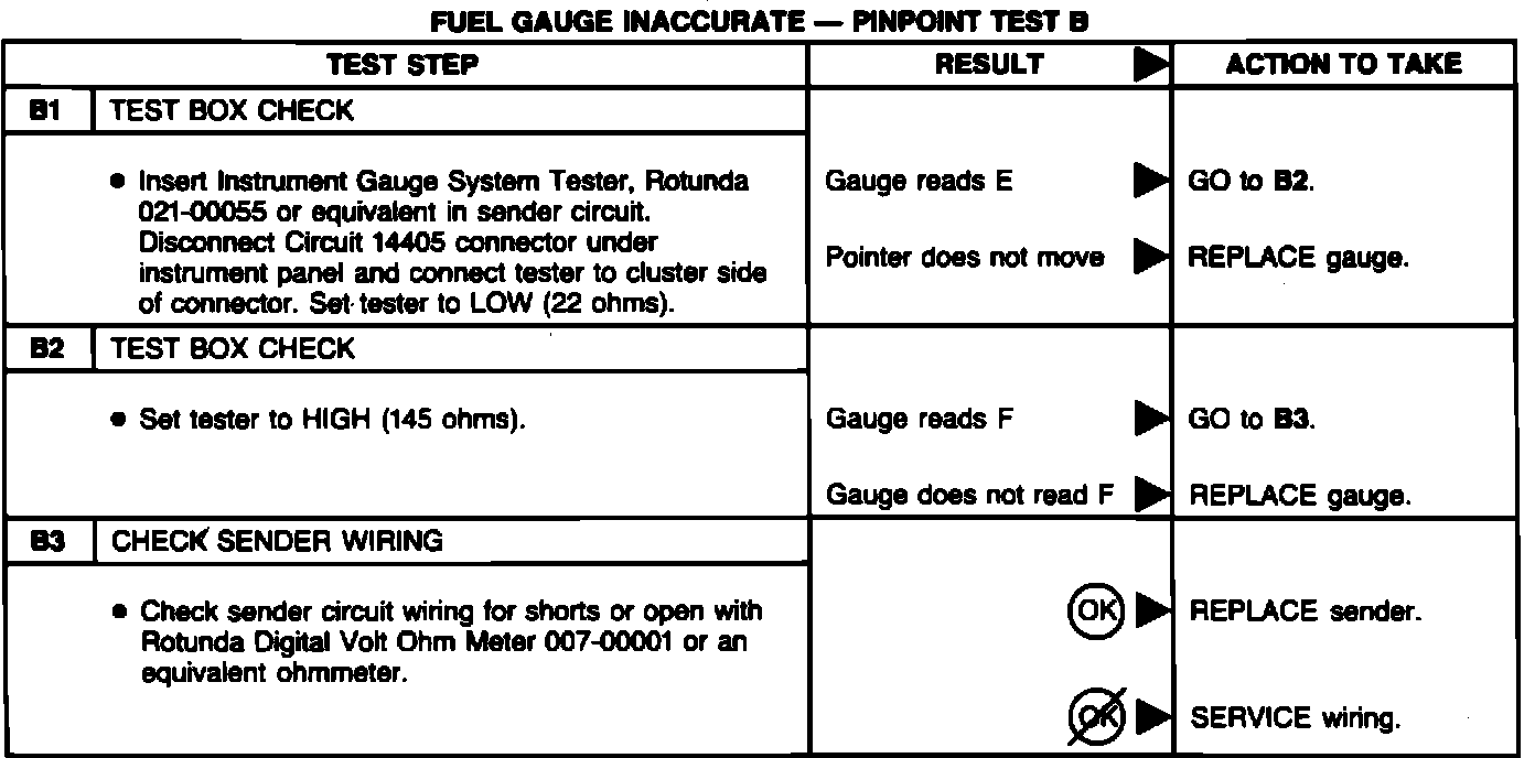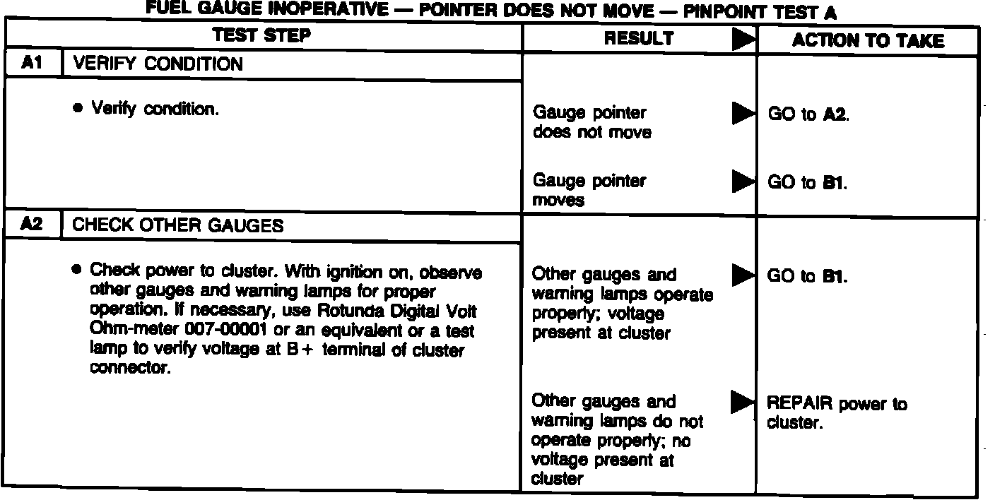 A Rotunda Instrument Gauge System Tester (021-00055) or equivalent should be used to test gauge operation. If a tester is not available, refer to pinpoint test below.Pinpoint Test A: