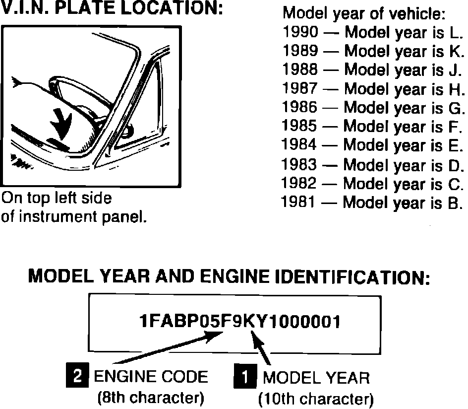 (1) MODEL YEAR IDENTIFICATION: Refer to illustrations of Vehicle Identification Number (VIN).