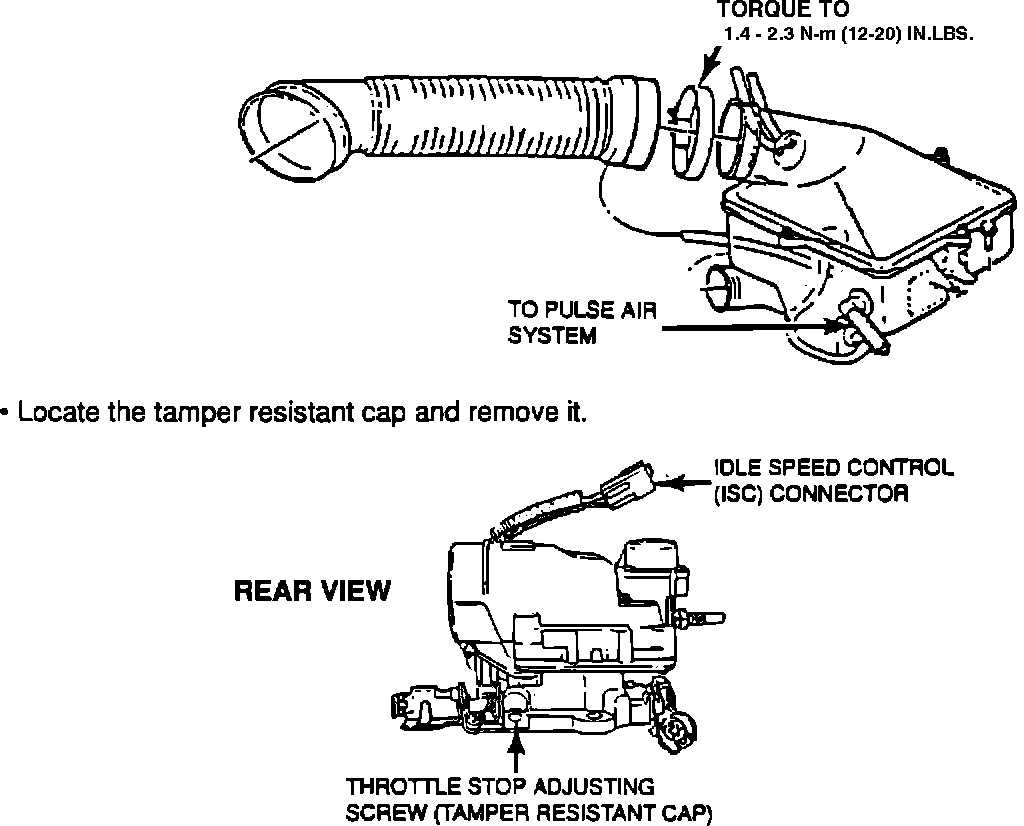 ^ Place a small quantity of room temperature vulcanizing (RTV) compound in the idle screw adjusting hole of the throttle body. This space was previously covered by the tamper resistant cap.