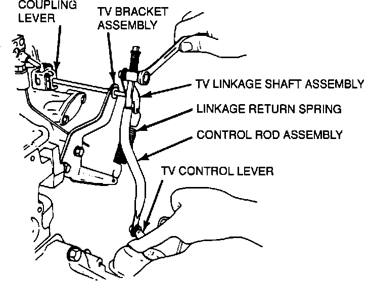 ^ If TV linkage, on automatic transmission equipped vehicles, is out of adjustment, adjust using the following procedure before adjusting Hard Stop-Idle.