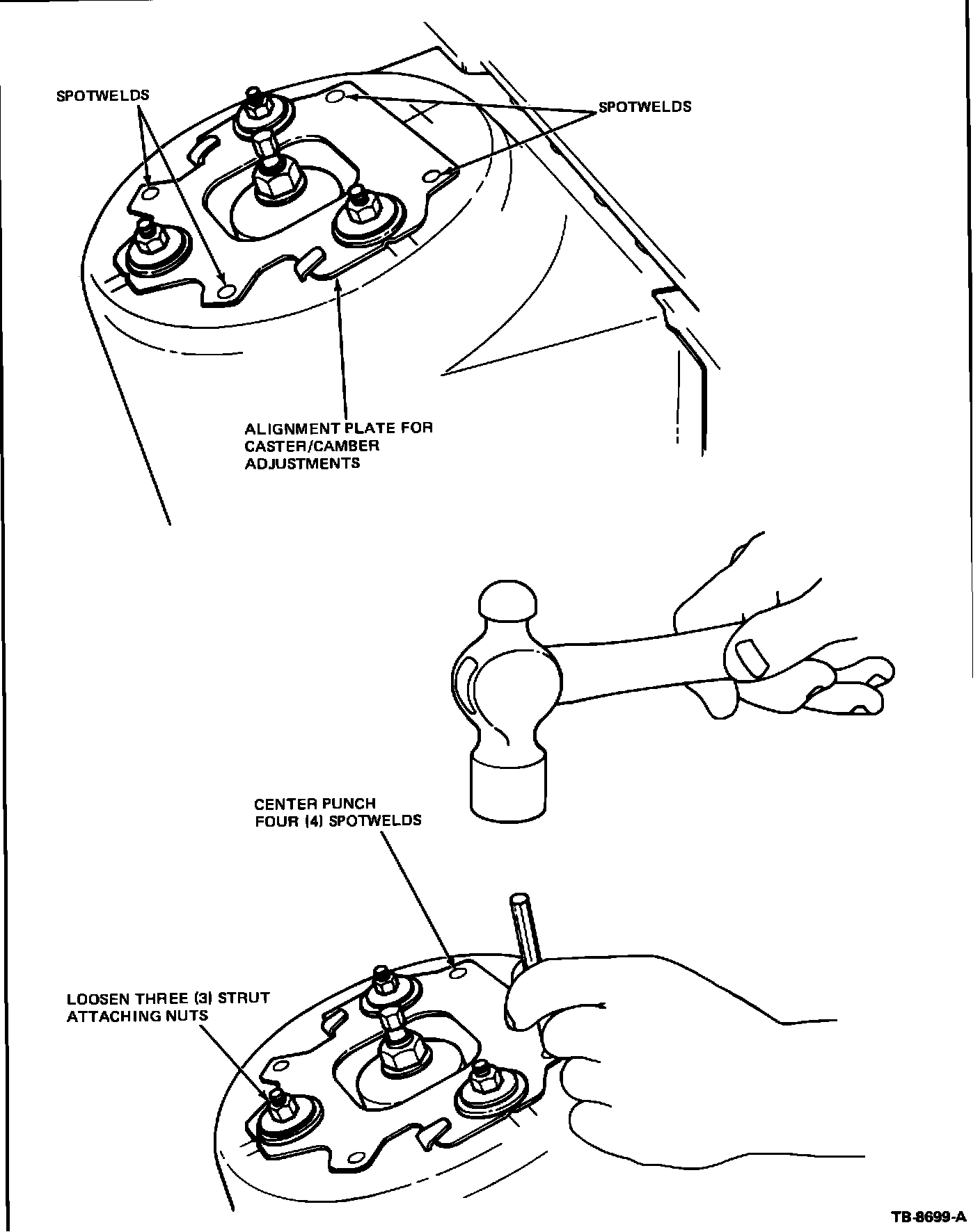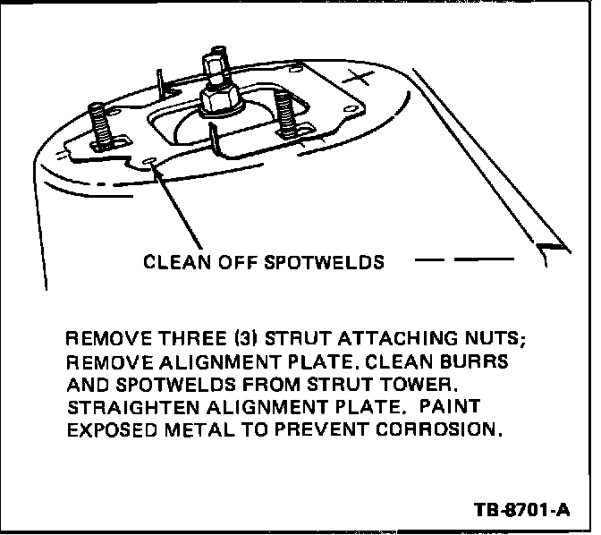 9. Make alignment - camber/caster adjustments. Refer to TSB 86-2-11 for specifications.