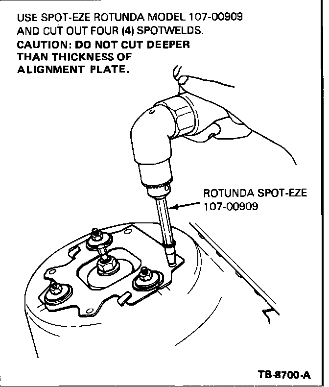 SPECIAL TOOL REQUIRED: Spot-Eze: Rotunda Tool No. 107-00909 Wright Tool Company P.0. Box 1239 Troy, MI 48099