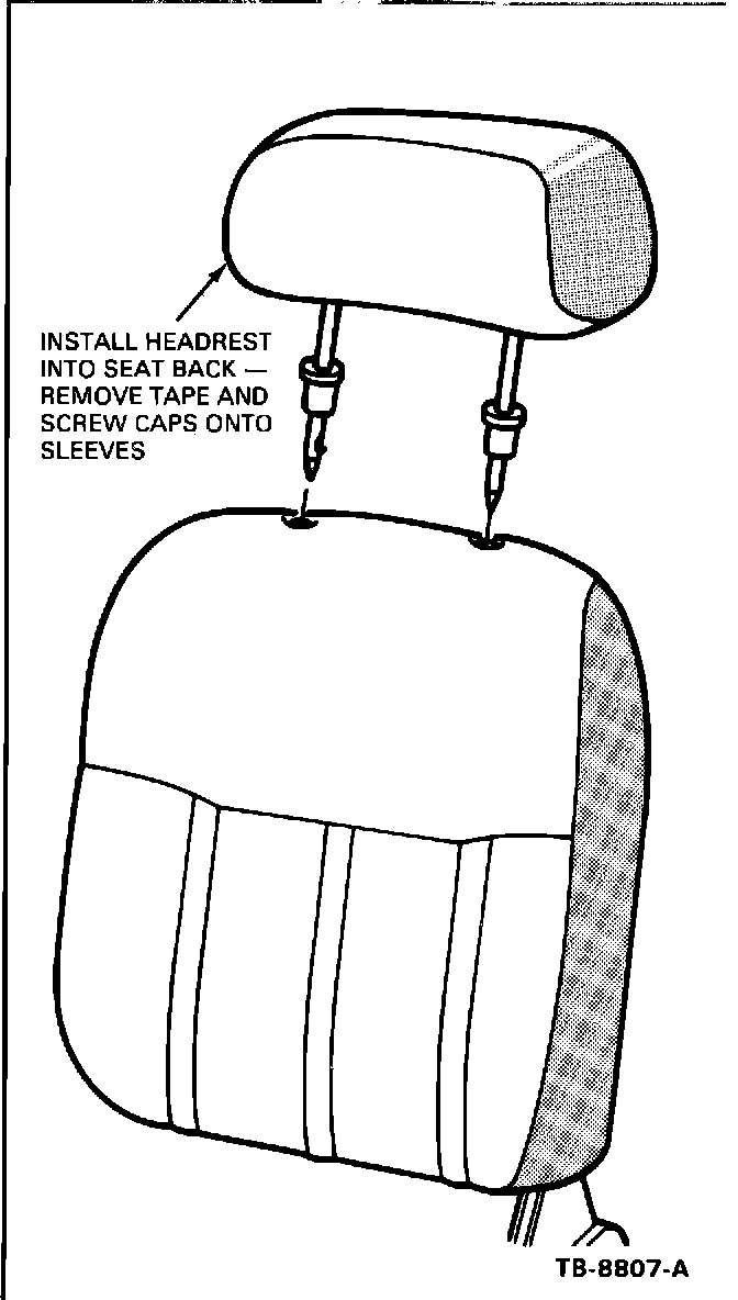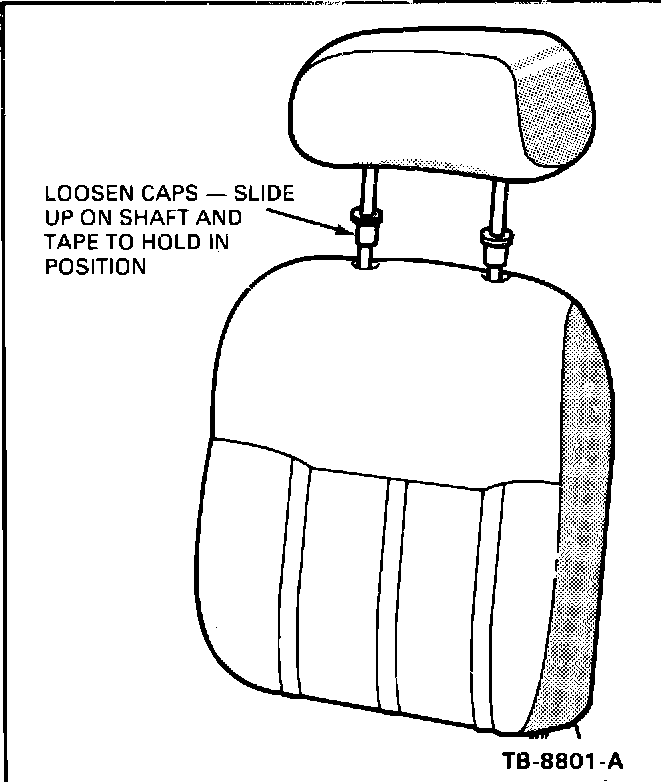 1. Raise the headrest full up. Loosen and raise sleeve caps. Tape caps to hold out of the way and lower headrest. (Figure 2)