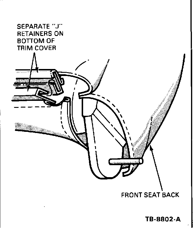 2. Separate front seat back trim cover at "J" retainers. (Figure 3)