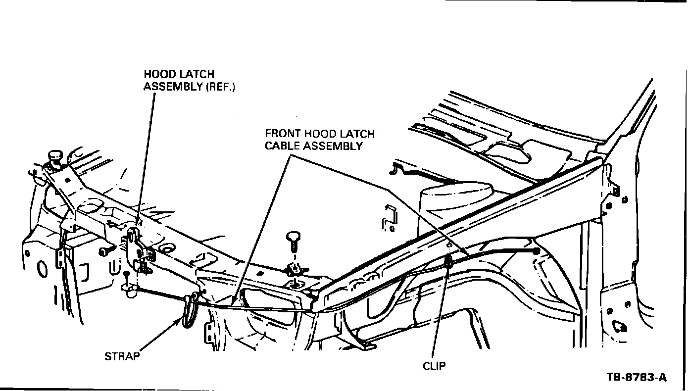 1. Remove and discard the existing hood release cable assembly (refer to 1986 Taurus/Sable Shop Manual, Section 44-08).