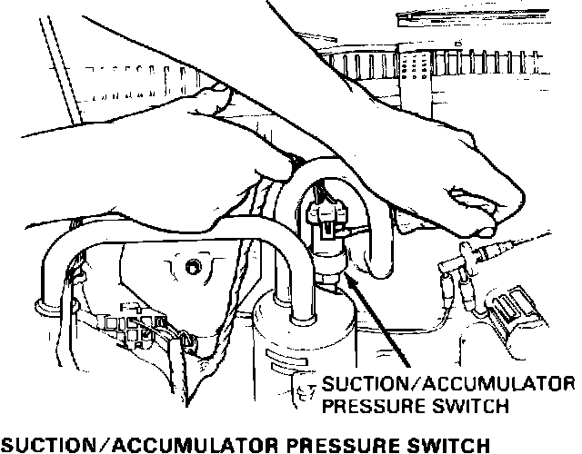 3. With vehicle engine off, disconnect the electrical connector at the A/C clutch. If electrical connector is hard to reach, disconnect pressure switch at suction/accumulator.