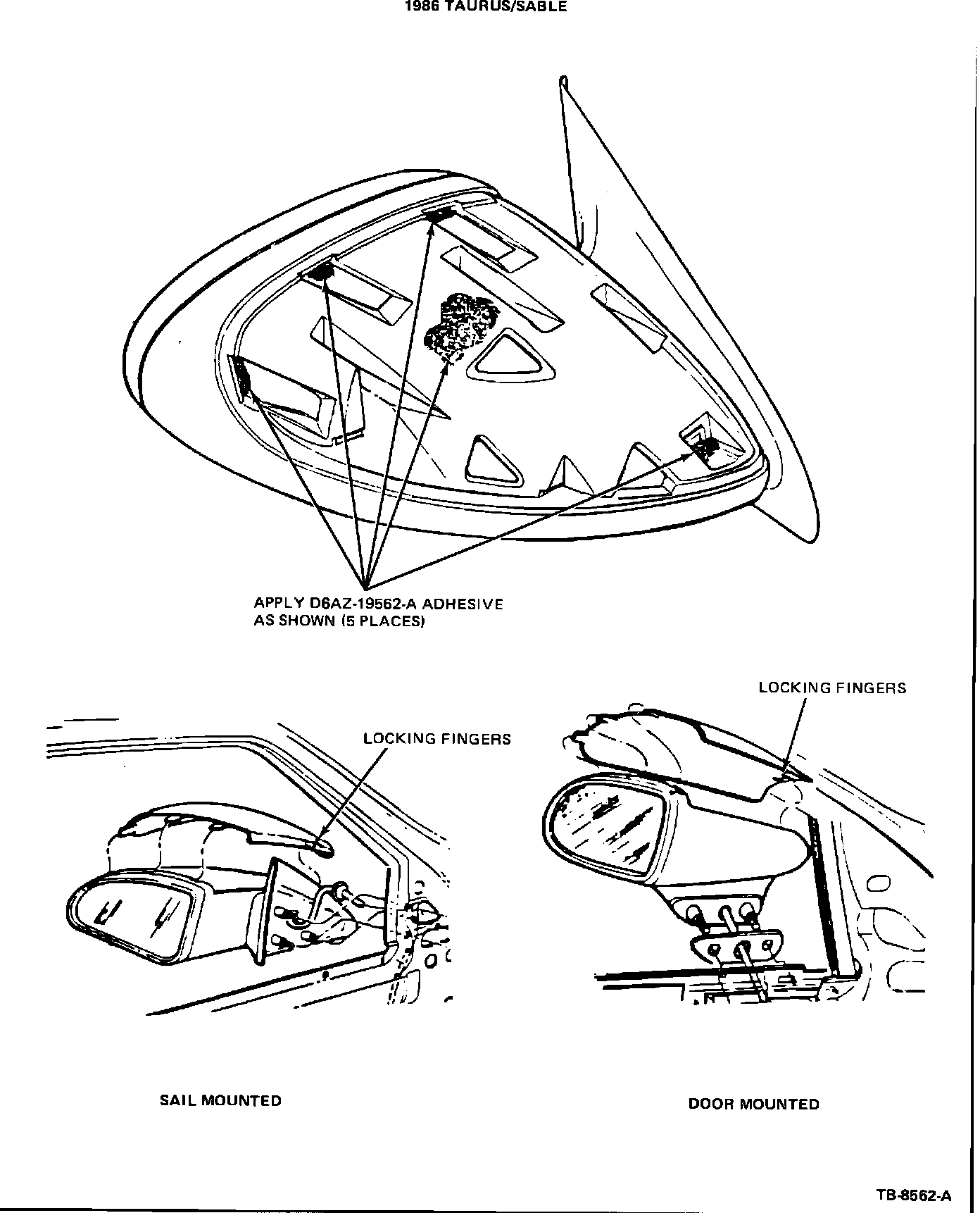 2. Apply D6AZ-19562-A adhesive to mirror housing as shown in Figure 2.