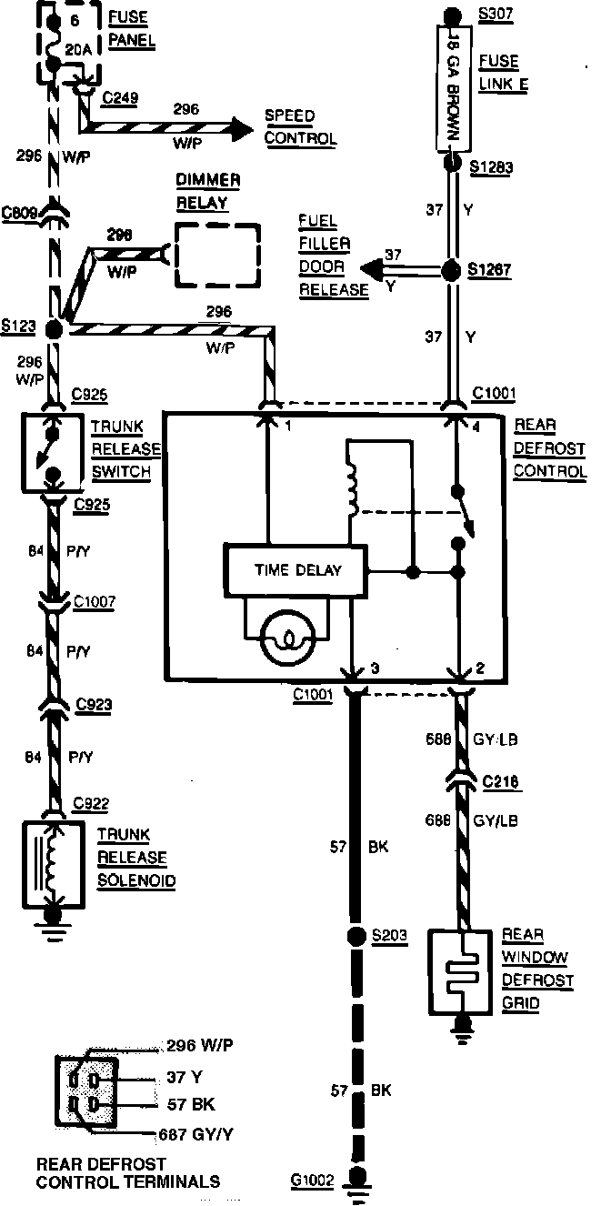 Fig. 49 Rear Defogger & Trunk Release Wiring Circuit. Tempo & Topaz: