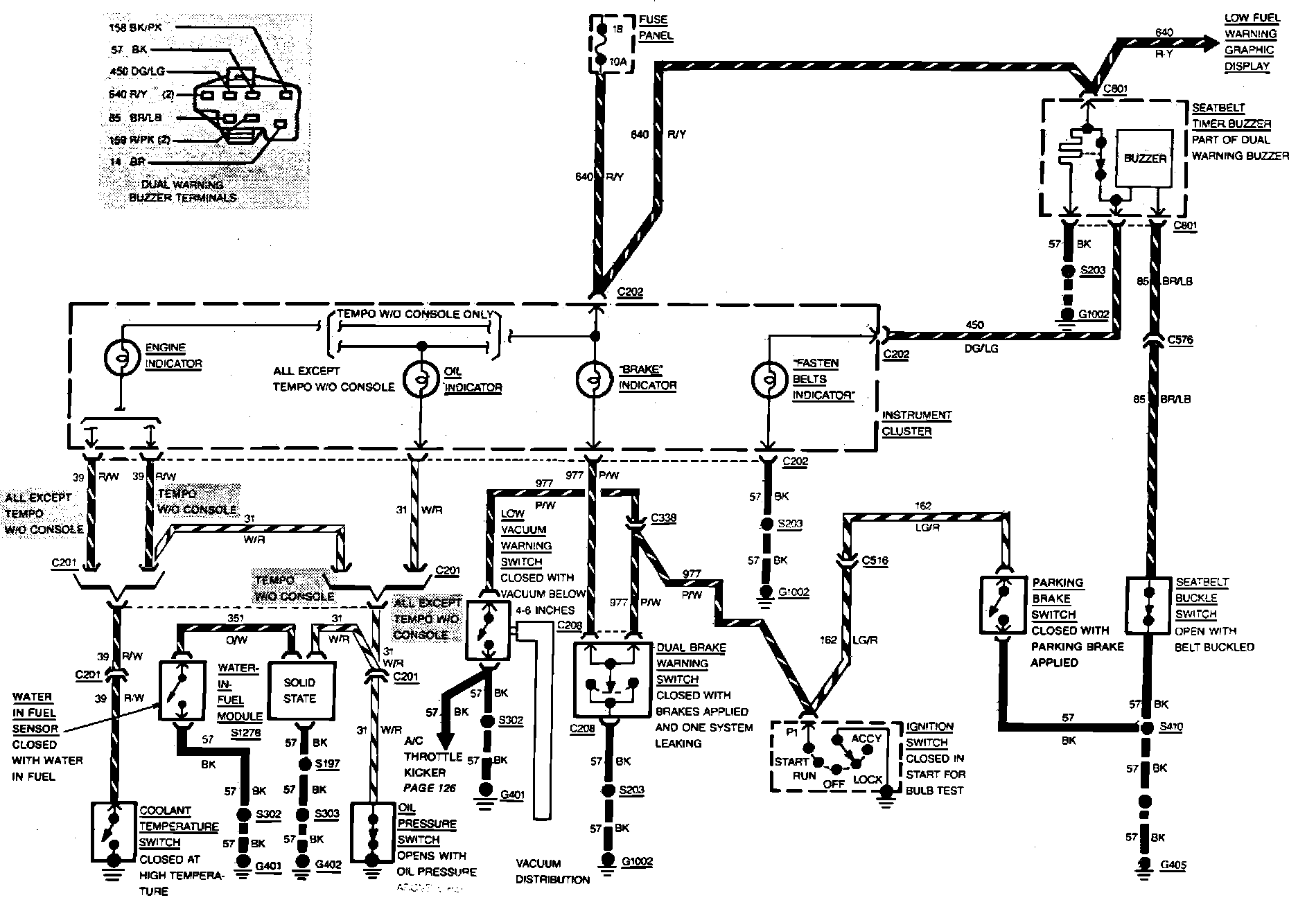 Fig. 33 Warning Indicator Wiring Circuit. Tempo & Topaz W/Diesel Engine: