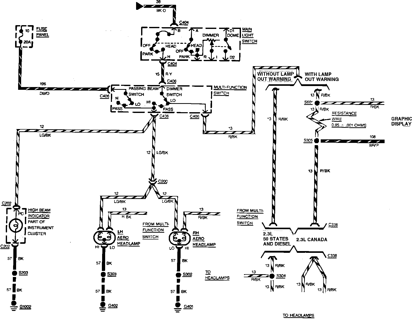 Fig. 15 Headlamp Wiring Circuit. Tempo & Topaz: