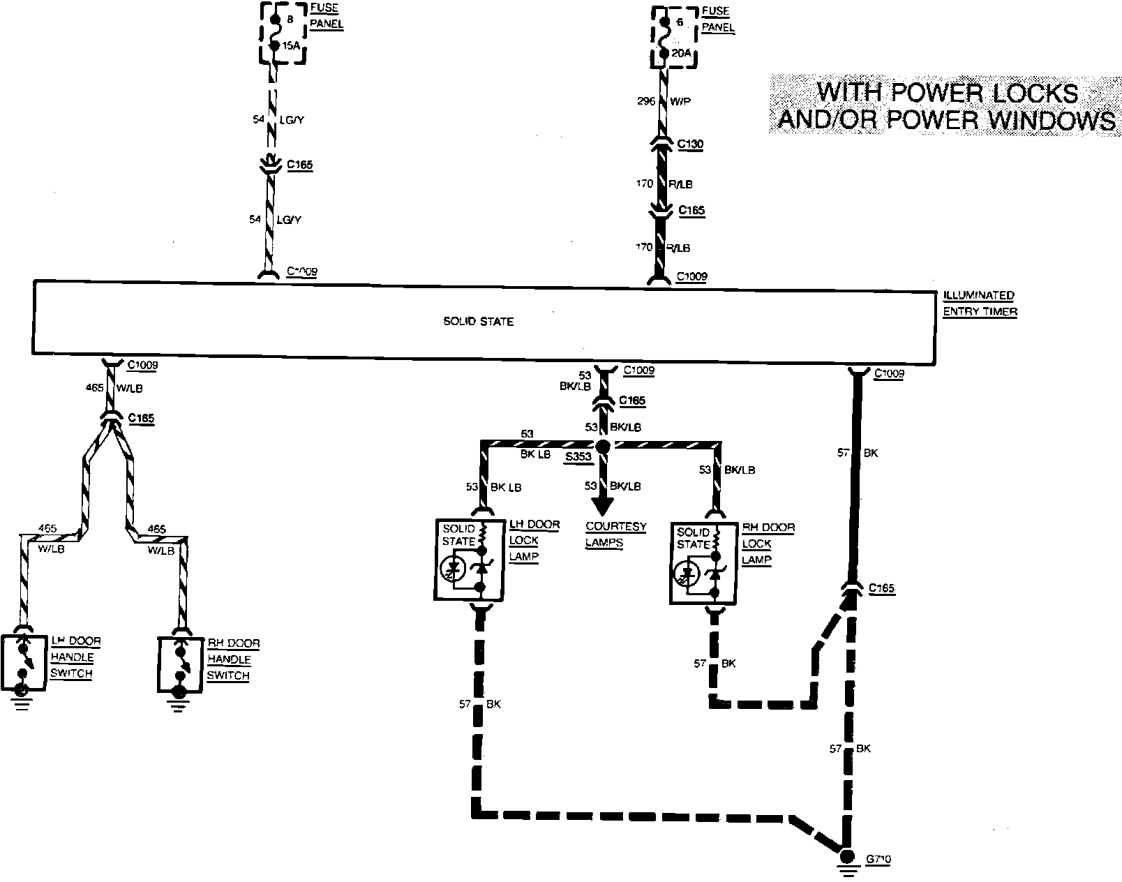 Fig. 19 Illuminated Entry System Wiring Circuit. Tempo & Topaz W/Power Door Locks And/Or Power Windows: