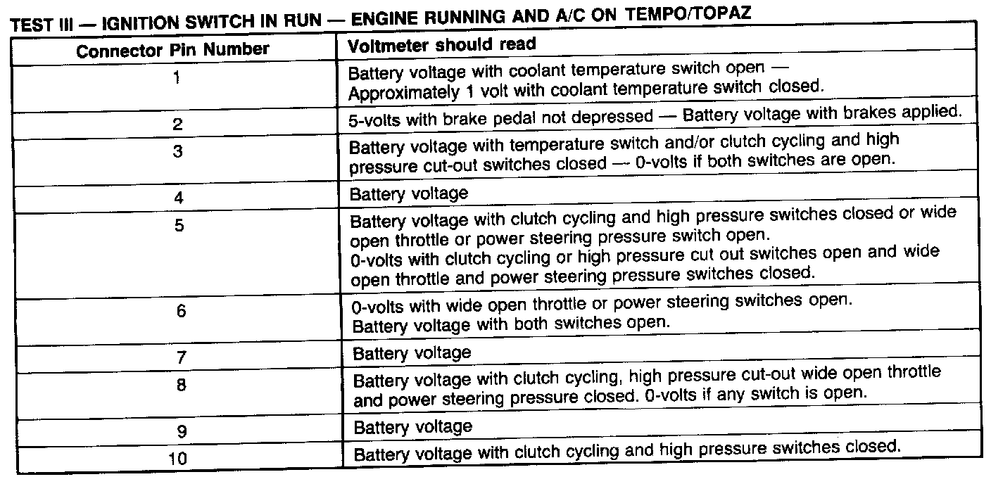 Test 3: Ignition Switch In RUN, Engine Running And A/C ON: