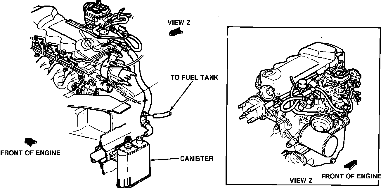 Fig. 7 Canister Venting System. 1985 - 88 4 Cylinder Engines: