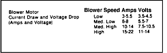 Fig. 34 Blower motor current draw & voltage test chart.: